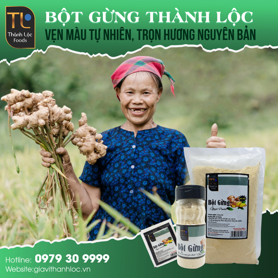 - Bột gừng: Theo Đông y, gừng khô vị cay, tính ôn; vào các kinh tâm, tỳ, phế và vị. Có tác dụng ôn trung tán hàn, hồi dương thông mạch. Dùng cho các trường hợp đau vùng ngực bụng do lạnh; nôn ói, tiêu chảy; tay chân lạnh, trụy mạch, ngoài ra còn làm thuốc giải độc nam tinh và bán hạ.